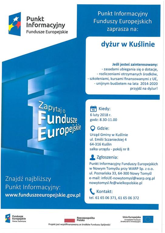 Punkt Informacyjny Funduszy Europejskich - dyżur w Kuślinie