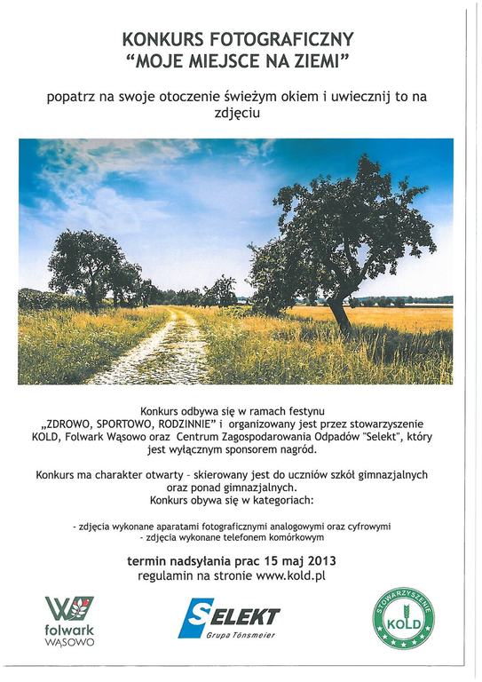 - Konkurs organizowany jest przez stowarzyszenie KOLD, Folwark Wąsowo oraz Centrum Zagospodarowania Odpadów "Selekt", który jest wyłacznym sponsorem nagród ufundowanych w konkursie. Konkurs odbywa się w ramach festynu „ZDROWO, SPORTOWO, RODZINNIE” organizowanego przez stowarzyszenie KOLD na terenie Folwarku Wąsowo 1 czerwca 2013 r.