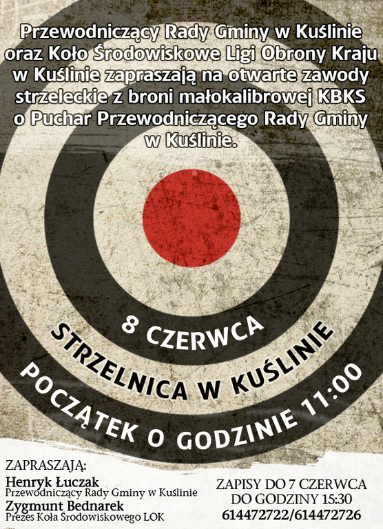 Uprzejmie informujemy, że zaplanowany na dzień 25 maja 2013 roku Turniej Strzelecki ze względu na warunki atmosferyczne nie odbył się, w związku z powyższym wyznaczono nowy termin Turnieju na dzień 8 czercwa 2013 roku.