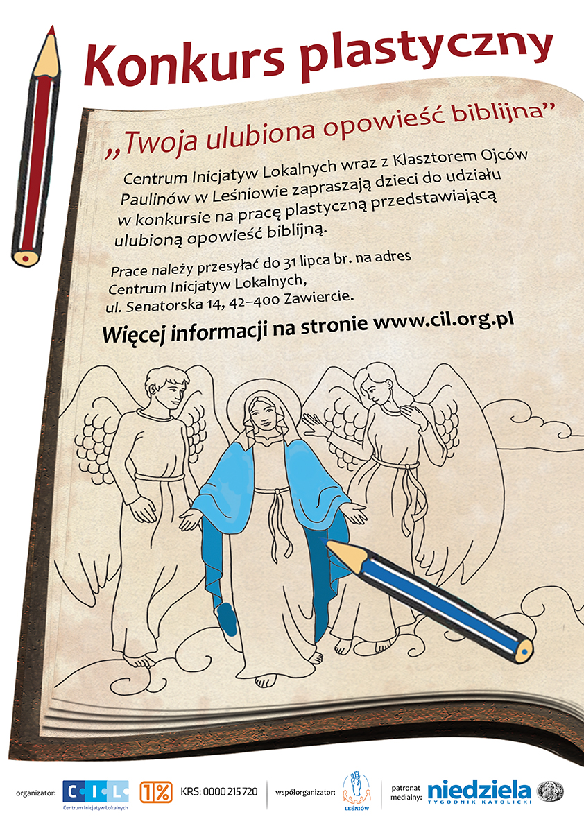 Centrum Inicjatyw Lokalnych, Klasztor Ojców Paulinów w Leśniowie oraz Tygodnik Katolicki „Niedziela” zapraszają do udziału w ogólnopolskim konkursie plastycznym pn. „Twoja ulubiona opowieść biblijna”. Konkurs skierowany jest do dzieci w wieku 4-13 lat z całej Polski.
