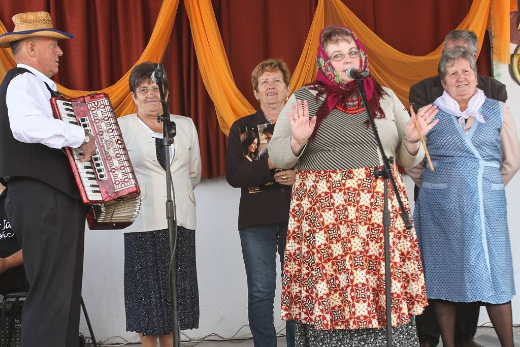 Obrzęd dożynkowy w wykonaniu „Wiaruchny z Urbanowa” przeplatał się z przekazaniem wieńca dożynkowego, przyśpiewkami, poczęstunkiem chleba.