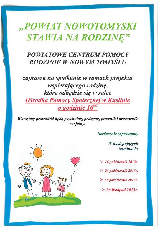 Powiatowe Centrum Pomocy Rodzinie w Nowym Tomyślu zaprasza