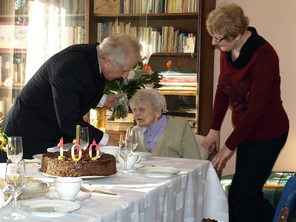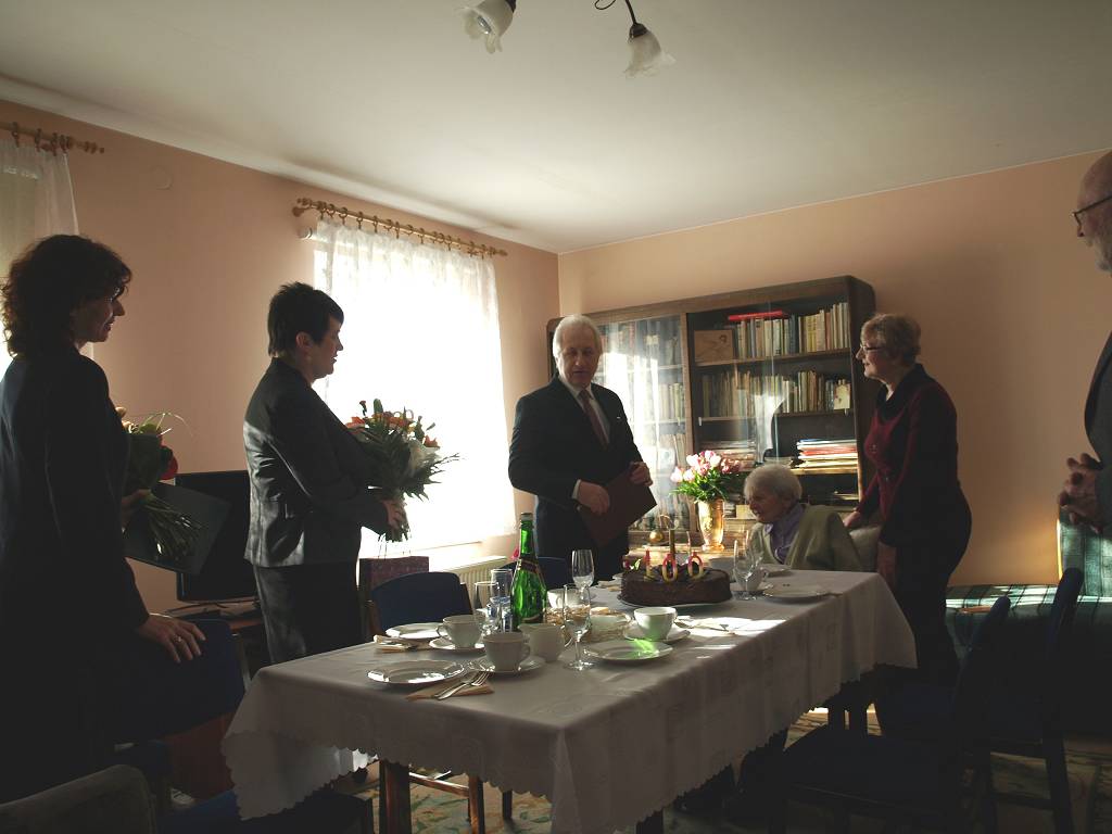 Na ręce Pani Julii złożono list gratulacyjny , upominek oraz wiązanki kwiatów, a także życzenia od Prezesa Rady Ministrów Donalda Tuska.