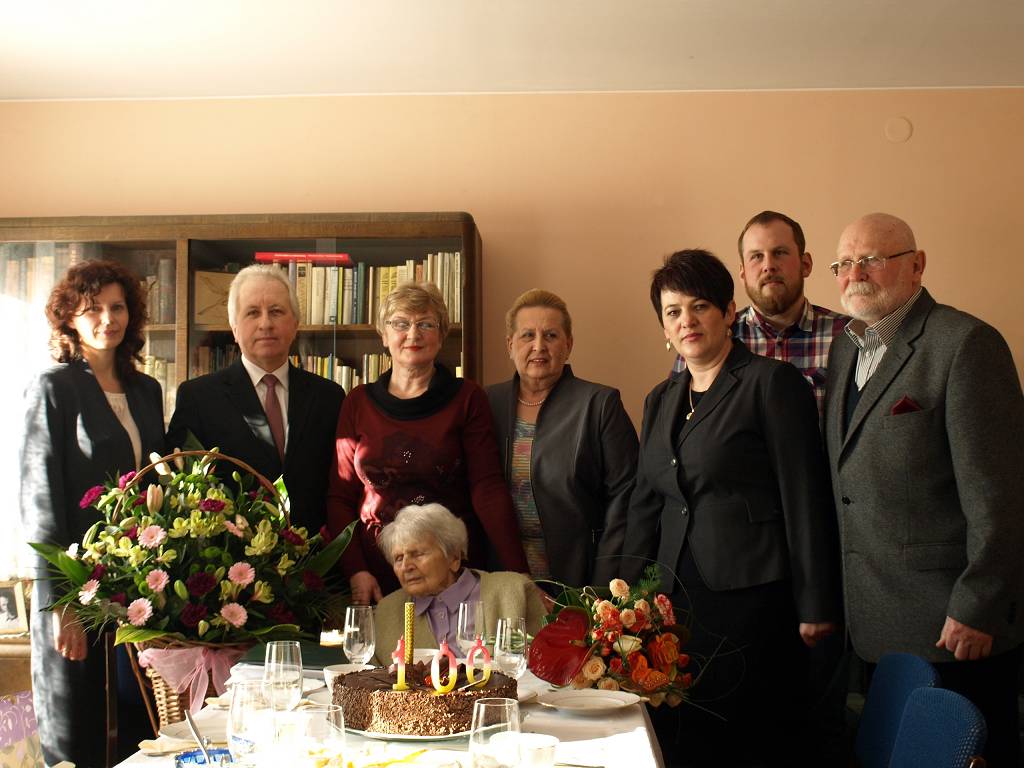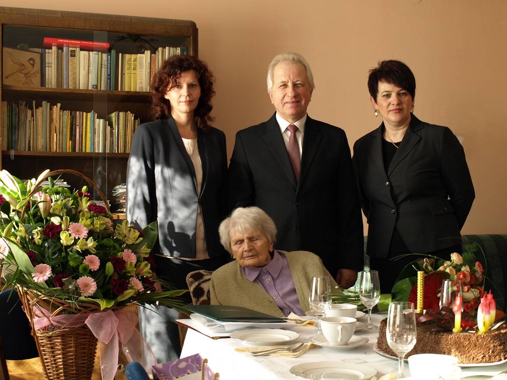 Z tej okazji Wójt Gminy Jerzy Dziamski wraz z Kierownikiem USC Elżbietą Zimną oraz Kierownikiem Inspektoratu ZUS w Nowym Tomyślu Anną Pawlak odwiedzili Jubilatkę.