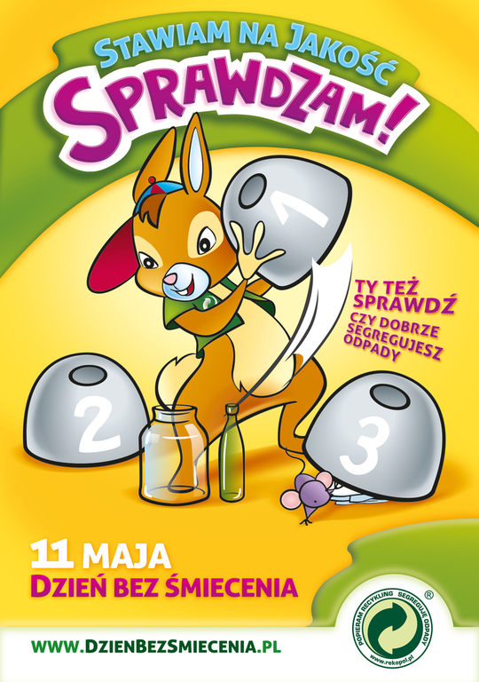 „Tegoroczna, dziewiąta edycja Dnia bez Śmiecenia odbędzie się pod znakiem jakości surowca. Stawiam na jakość. Sprawdzam! – hasło kampanii - ma na celu skłonić nas do sprawdzenia czy skoro segregujemy odpady to na pewno robimy to poprawnie– zgodnie z obowiązującymi w naszej gminie standardami zbiórki. Po przeprowadzeniu tzw. reformy śmieciowej gmina jest odpowiedzialna