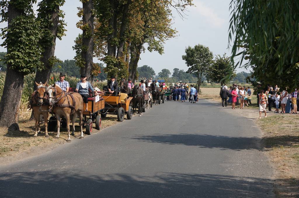 Na czele korowodu jechało 11 bryczek wiozących zaproszonych gości. Dalej można było podziwiać zabytkowy traktor, który wiózł wieniec gminny oraz dziewczyny w strojach ludowych, dalej szły delegacje kościelne i delegacje poszczególnych sołectw oraz jechał sprzęt rolniczy zarówno ten funkcjonujący w dawnych czasach, jak i ten nowoczesny.