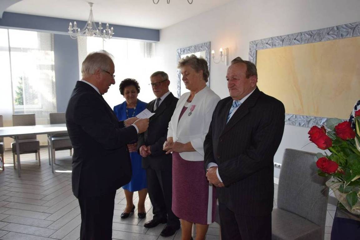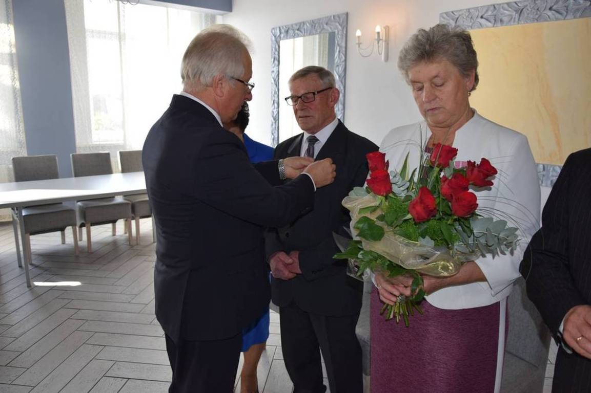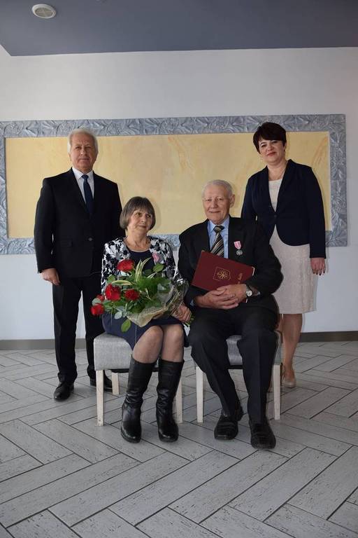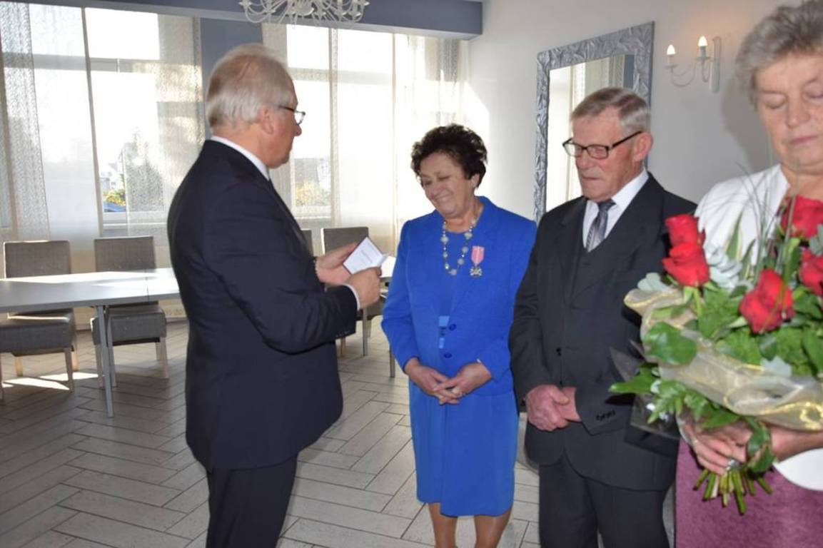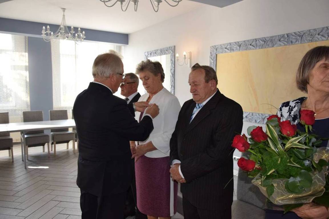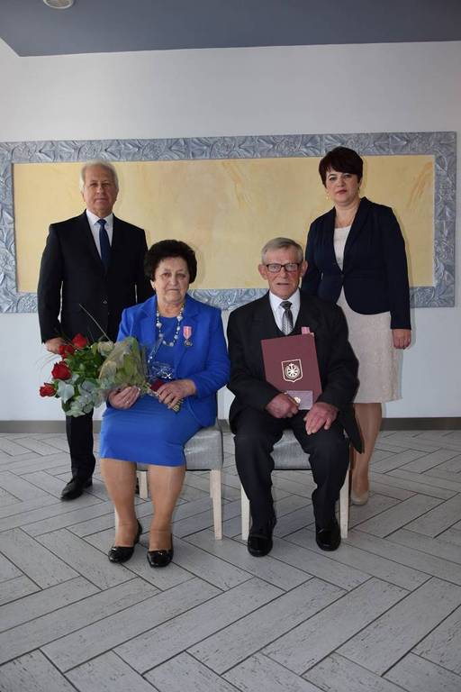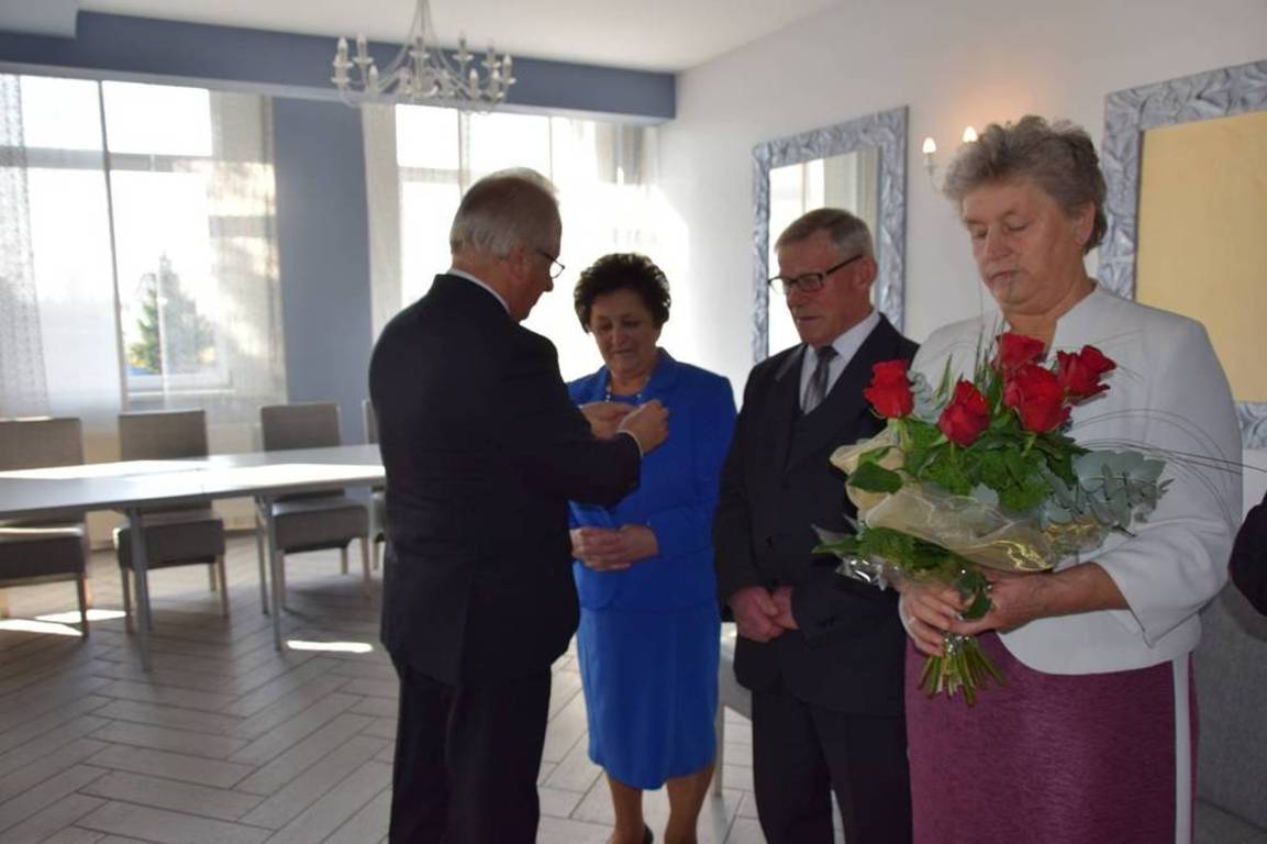 Wójt Gminy Kuślin Pan Jerzy Dziamski wraz z Kierownikiem Urzędu Stanu Cywilnego Panią Elżbietą Zimną wręczyli odznaczenia i złożyli życzenia następującym Jubilatom :