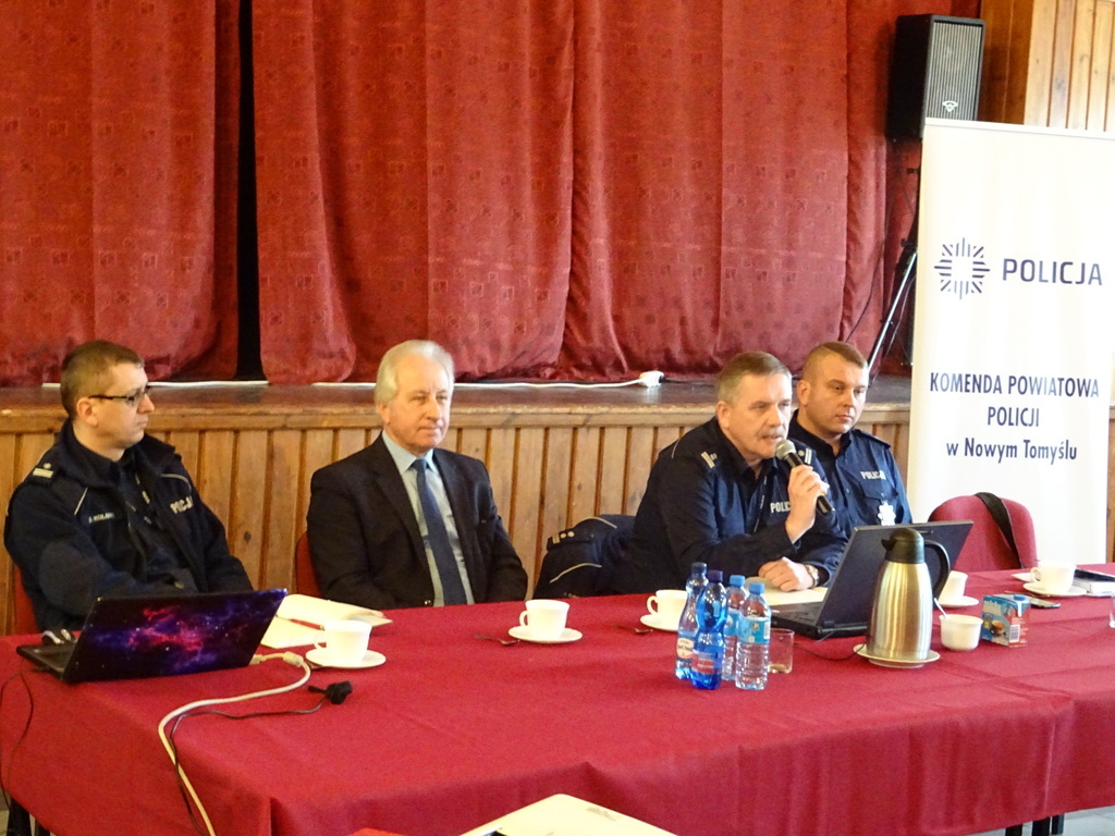 w Nowym Tomyślu podinsp. Sławomir Mikułko, Ekspert Wydziału Prewencji podinsp. Dariusz Kolanko oraz Kierownik Posterunku Policji w Kuślinie mł. asp. Michał Perz. Uczestników zapoznano ze stanem bezpieczeństwa na terenie gminy Kuślin.